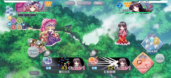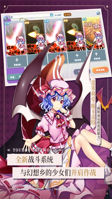 【全新战斗系统】:在这里,我们有全新战斗系统-手执御币的红白巫女、乘着扫帚的金发魔法使,操纵时间的潇洒女仆长、剑术高超的半灵少女,还有赤瞳长耳的月兔、穿梭隙间的妖怪、技艺精湛的人偶师等。