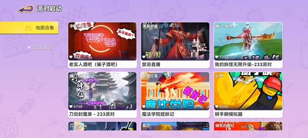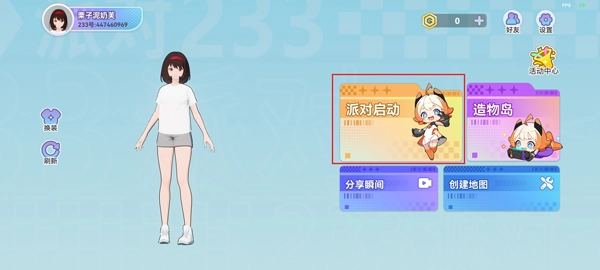 8、打扮完成后点击“派对启动”,选择一个感兴趣的地图,每个地图都拥有独特玩法和可定制的奖励机制,点击即可进入体验。