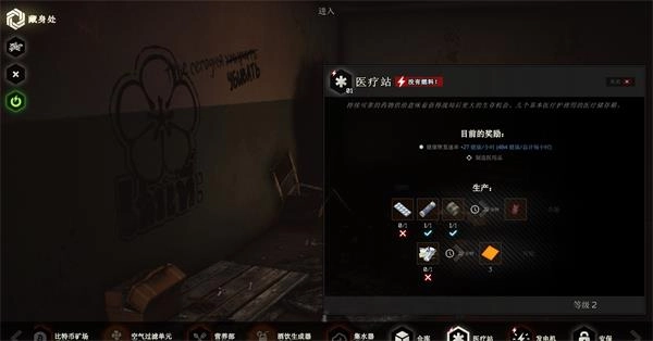 医疗站能够允许玩家制造医疗用品并增加健康的恢复速率。