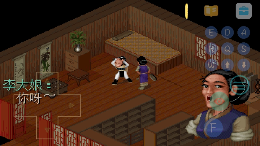 6、将姥姥埋葬後返回客栈先和躲在门口旁的小虎谈话小虎告知苗人寻仇进门与苗人博斗, 婶婶被挟持..但被婶婶的穿云手..(之前的生病好像生假的..) 婶婶决定让灵儿与逍遥结伴寻母晚上灵儿要求一起睡