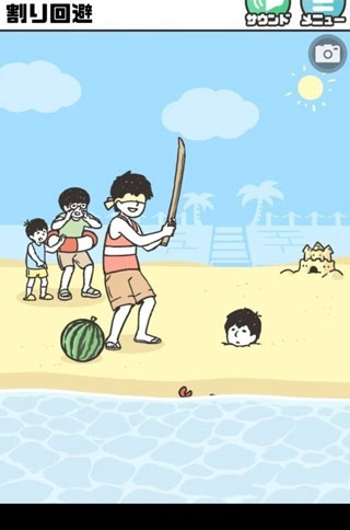第二十六关,切换到右边场景,点击桌子上随机五个西瓜,把其中一个瓜拖给武道士,在点桌子上的最后一个瓜(头盔),回到小明场景,把头盔拖到小明头上就过关啦!!