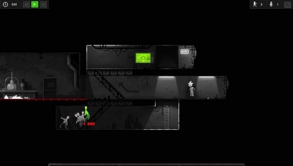 4、炸掉门后,为了防止僵尸陆续掉入陷阱要在走过楼梯后使用“霸主”,让其调头走上楼梯启动机关让陷阱消失,当然为了达成成就记住别放过一个人。