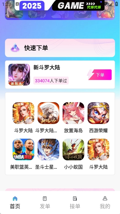 1、【一键代练】游戏代练,接单返单,一键操作。