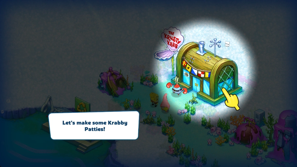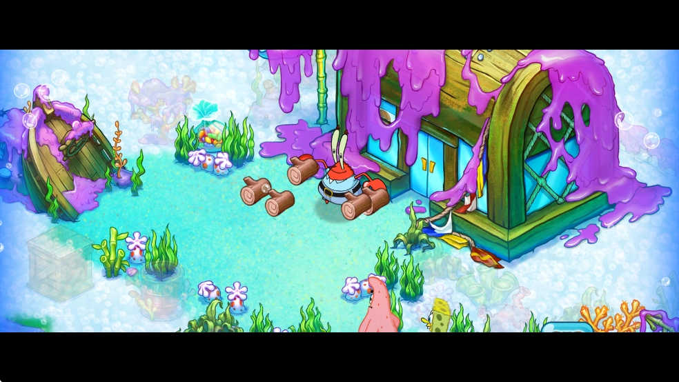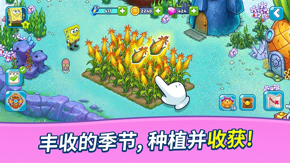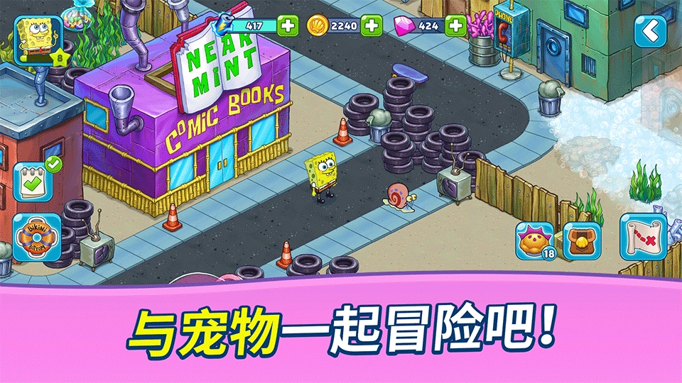 6、与海绵宝宝宇宙中你最喜欢的角色见面并互动,从帕特里克、桑迪、螃蟹先生和鱿鱼等老朋友到水母王、凯文·C 黄瓜等新朋友!