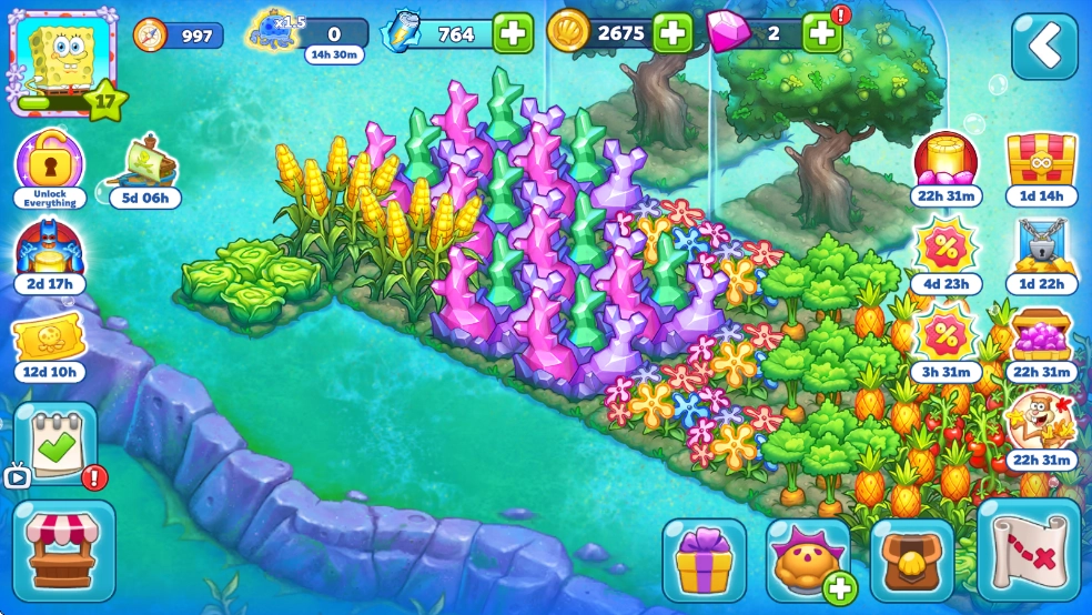 5、打造自己的比基尼泳裤,前往海绵宝宝世界中粉丝最喜欢的地方,例如水母田、新海带城、亚特兰蒂斯等!