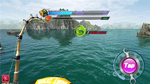 2、当鱼儿咬钩的时候,屏幕会有特殊效果,这时候点击右下角的【TAP】按钮来收杆。