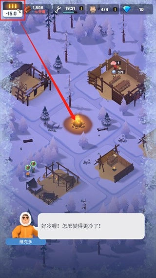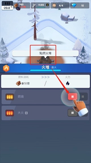 5、夜幕降临后,气温会急剧下降,一旦降至不适宜的温度,我们就得把大火的火力调至最大,以此维持适宜生存的温度。