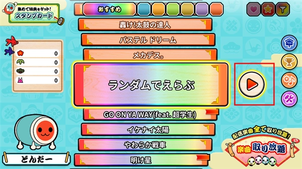 7、如果想要切换太鼓敲击音色,那么在选择歌曲界面,点击右方第三个按钮即可进入太鼓音乐设置界面