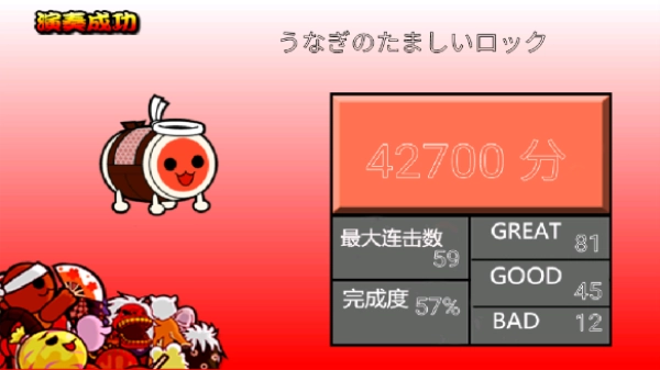 1、红色:敲打鼓面。分数随着连段数和精确度评定。“良”的分数是“可”的分数的两倍。· 蓝色:敲打鼓边。 分数随着连段数和精确度评定。“良”的分数是“可”的分数的两倍。