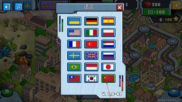 3、进去之后,找到中国国旗,选择它,游戏界面即可变成中文界面。