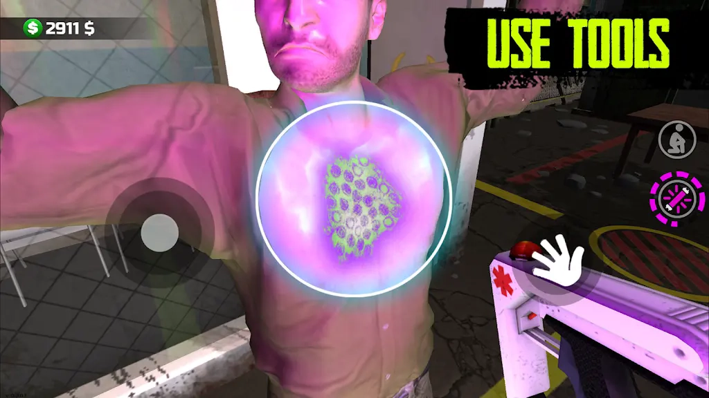 1、在入口处逐一审查排队者,点击其身体部位检查症状,如伤口、体温或呼吸频率,收集诊断信息。