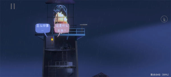 6、对话结束后,前往山顶的灯塔,点击“开门”进入;