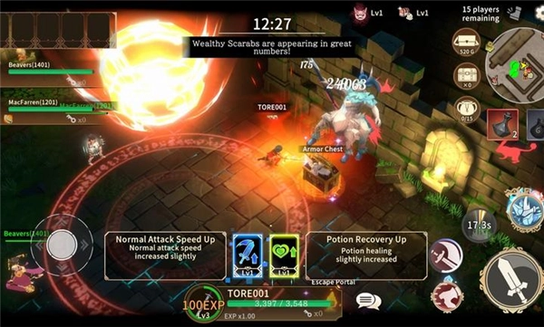 这款游戏全新打造的地牢内遍布藏有珍稀道具的宝箱,但均有强力怪物守护。玩家需与队友协作击败怪物,获取经验值提升等级,解锁更强技能。安全开启宝箱后,可获得装备、素材或金币等丰厚奖励。