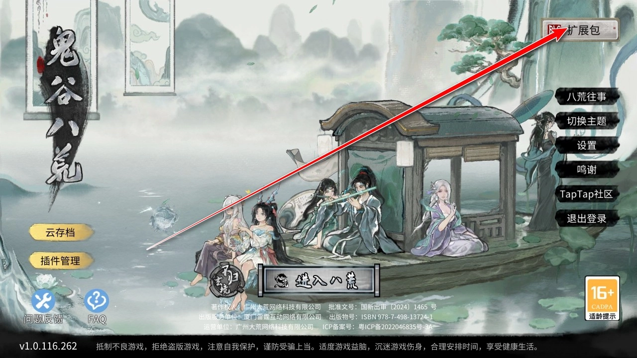 1、首先在本站下载安装鬼谷八荒后,点击进入游戏,登录自己的TapTap账号后即可点击屏幕进入游戏。