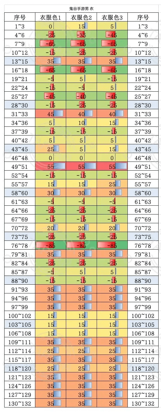 所有数据均以1号位为基准,根据基准进行上下浮动。