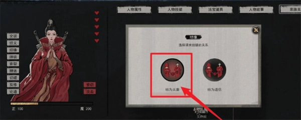 首先玩家需要找一个亲密度比较高的女性,如果你不会看亲密值直接点对方小头像看有几个爱心就行,满爱心的话你可以看到会有一个结缘按钮,直接点击会弹出对话框,直接选结为夫妻就行了,道侣虽然也行但无法算作自己的家庭成员,成为你的妻子之后就能怀孕生小孩。