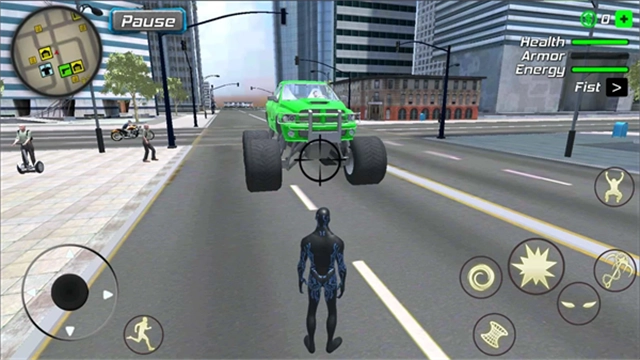 1. 运用你的黑洞能力,把城市里的罪犯一网打尽,瞬间歼灭他们的首领,动作极具冲击感。