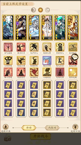 理想卡组为:五岳苍穹剑–幻影剑法–寒苍剑法–悟明剑法–玉慈九剑–流云十三式