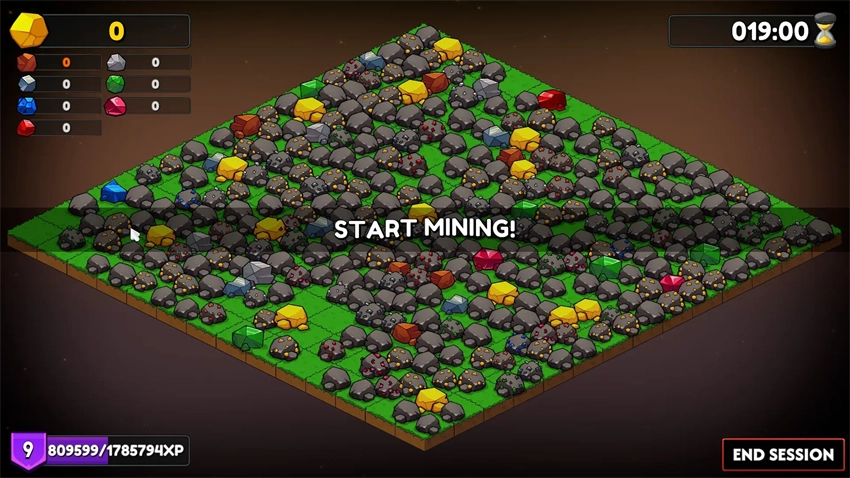 2、正式开始后点击矿石就可以进行挖矿,在悬浮球范围内的所有矿石都会被采集。