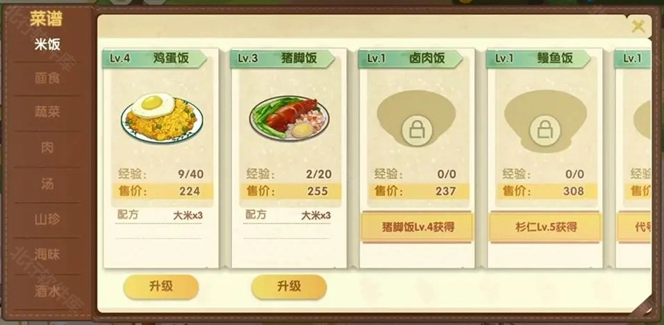 1.这款游戏中,玩家可以发现众多美食,这些美食都记录在画面右侧的菜谱功能图标里。