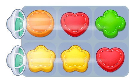 纽扣被线连接在一起,它们成组出现。在纽扣旁匹配元素或引爆加速道具可以拆除纽扣上的线,从而解开纽扣。当一串纽扣上的一颗被解开时,整串纽扣都会被消除。仔细观察每颗纽扣属于哪一组,这会帮助你更好地解开它们。