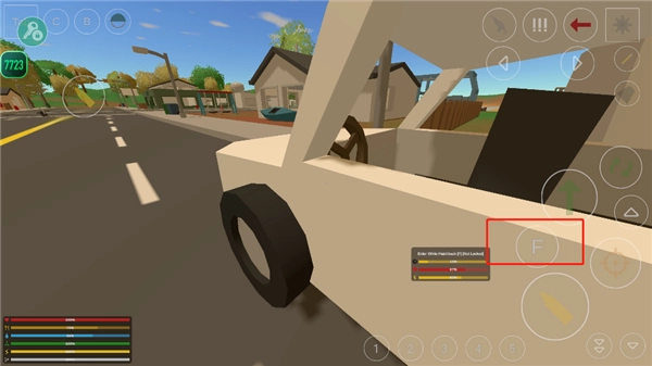 5、在探索过程中,我们也会碰到载具,点击f,进行上下车;