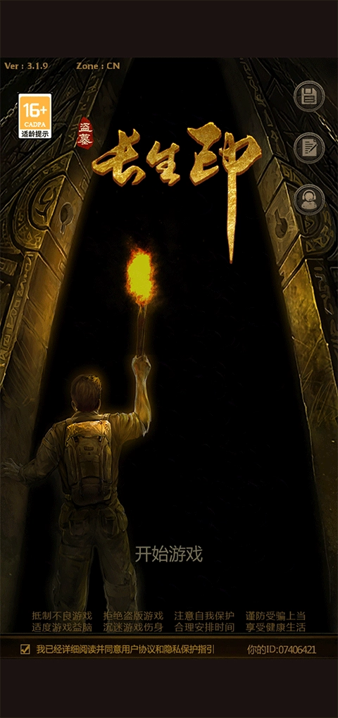 1、首先打开盗墓长生印最新版本,点击开始游戏