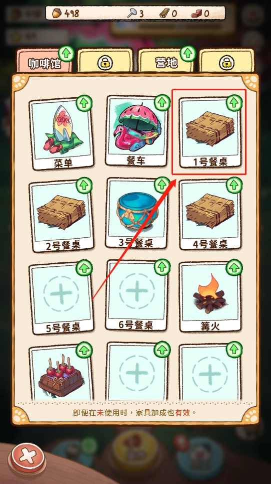 3、找到可以购买并升级的餐桌如“鼓形餐桌”,并点击购买