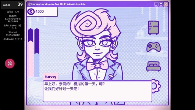 1、白天阶段:玩家与哈维互动,采取关怀行动来保持他的幸福。您可以在玩五个迷你游戏的同时喂养、抚摸和管理他的精神状态,以赚取虚拟现金。