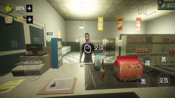 2、紧急情况下可使用道具,用货架上的罐头砸向伪人暂时击退,或按收银台警报按钮。