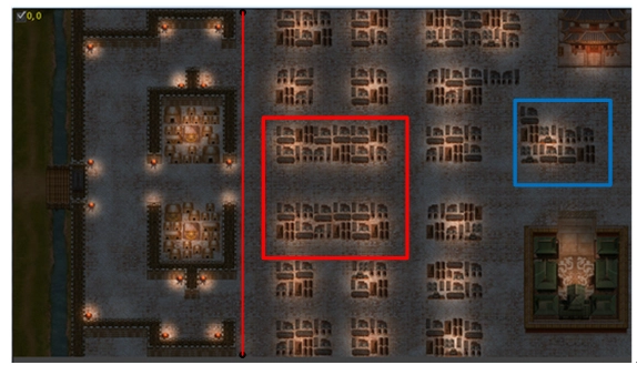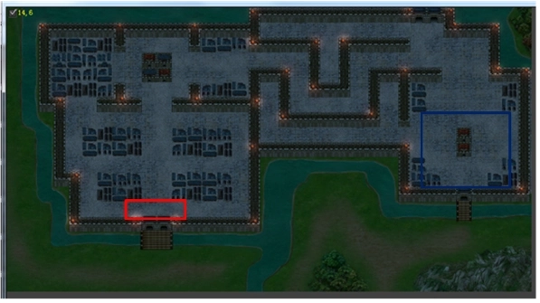本关旨在锻炼游戏伙伴们的输出能力。第2回合刘感阵亡后推进剧情,具体表现要求为坚守城池,直至秦王入城。第4回合,李世民率领大队人马赶到。前十个回合的关键任务是守城与清兵,切记不可出城。可以安排1人站在红色方块处防守正门,选用李世民或者令箭枪兵,其余人员全部向左侧及左下方靠拢,同时上好强行技能,准备在第十一个回合出城。蓝圈区域会有无尽复生的破甲副将,只需让红色方块处的人不将其击杀,使其在城门前“罚站”即可。红圈部位各设有一波伏兵。本关的MVP当属刺客气侯君集。侯君集能够直接进入下城攻击大夫。这里有个小技巧:下城城外的boss可等侯君集进城触发伏兵后再击杀,如此便无需二次击杀。上城城外的boss则需先杀掉,才会触发城内伏兵。下城清理完毕后,立刻出城击杀小薛。上下城都清理干净后,城门口的兵不会再复生,下城的人接着向上杀即可。全灭敌军且无人员撤退,可获得祝融巾奖励。二周目全灭过关,奖励柴绍发展点,若拥有皮肤则额外再奖励两点。