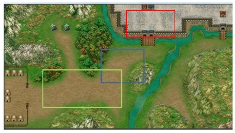 本关的难点在于剧情触发。可安排程咬金骑黄骠马,李世民既可以骑黄马,也能选择突击马。程咬金骑黄马时,在第3回合可与尉迟恭交战并触发单挑。程咬金先主动过河,接着返回营寨激活大部队,这时城内红框位置会出现1波伏兵,清理掉即可。之后让秦琼和李世民对话,两人过河后再往回走。关键要点是:不要急于触发秦琼与尉迟恭的单挑,先派遣1个步兵占领红框下方的城门,然后再触发秦琼与尉迟恭的单挑。单挑结束后尉迟恭会撤退,下一回合他会带领1波兵在城外蓝框内出现,此时红框内的敌军会不断复生,不过有步兵卡位,他们造成的威胁不大。在绿框范围内(树林以下区域),让秦琼与尉迟恭交战,且绿框内没有敌军时,会触发“3鞭换两锏”情节,随后李世民返回营寨即可过关。若在2周目触发剧情并过关,会奖励李世民发展点,若拥有皮肤还会额外奖励两点。