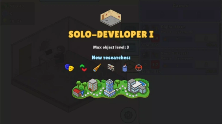 6、点击第三个按钮可以升级你的开发设施,等级越高制作的游戏越好。