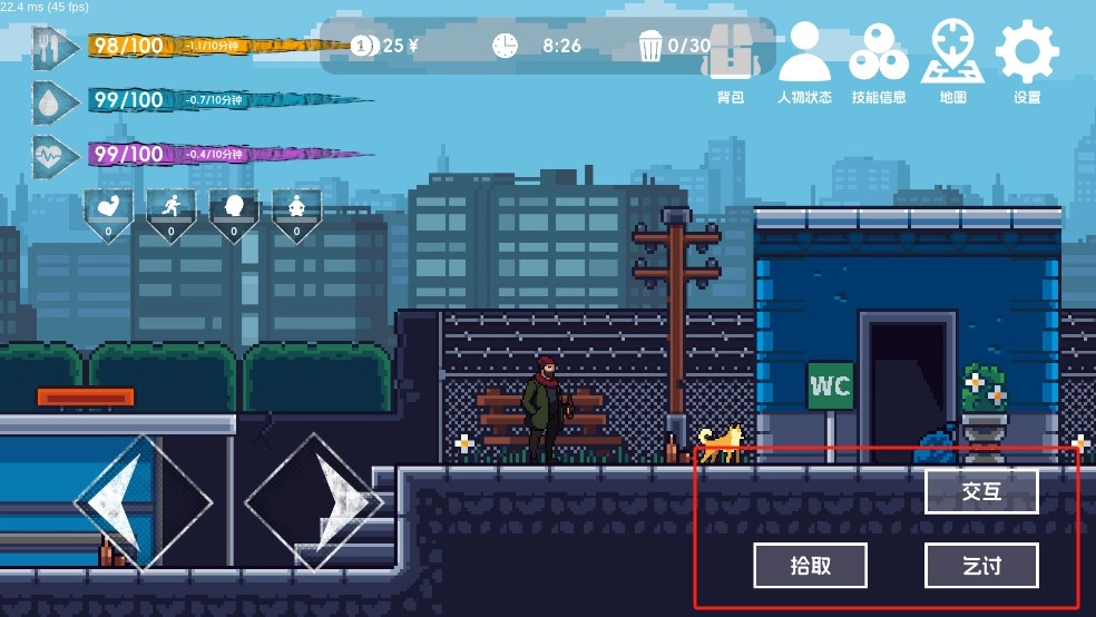 3、采用像素屏幕设计,让你体验到独一无二的内容。玩家在游戏中扮演一名身无分文的乞丐,并在此经历人生。