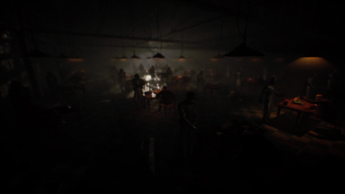 3、画面表现:采用3D建模,但以黑白色调为主,突出惊悚氛围。机库环境中的打字机、手枪等道具细节丰富,增强了代入感。