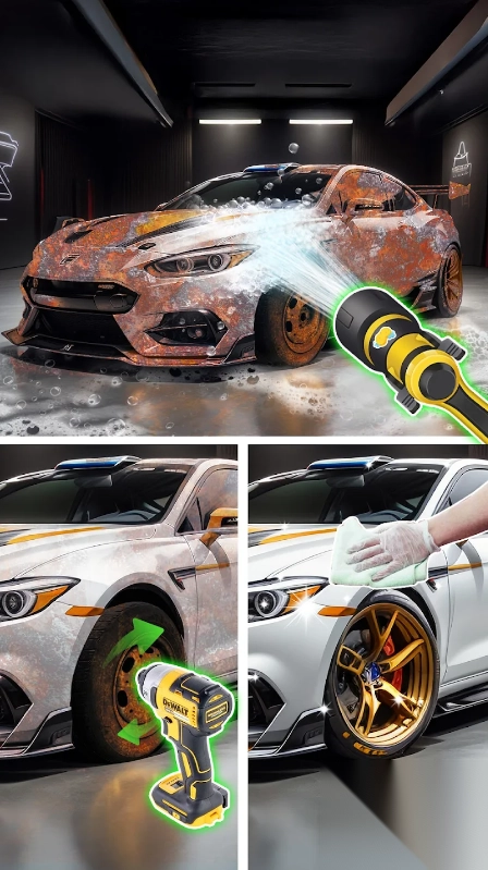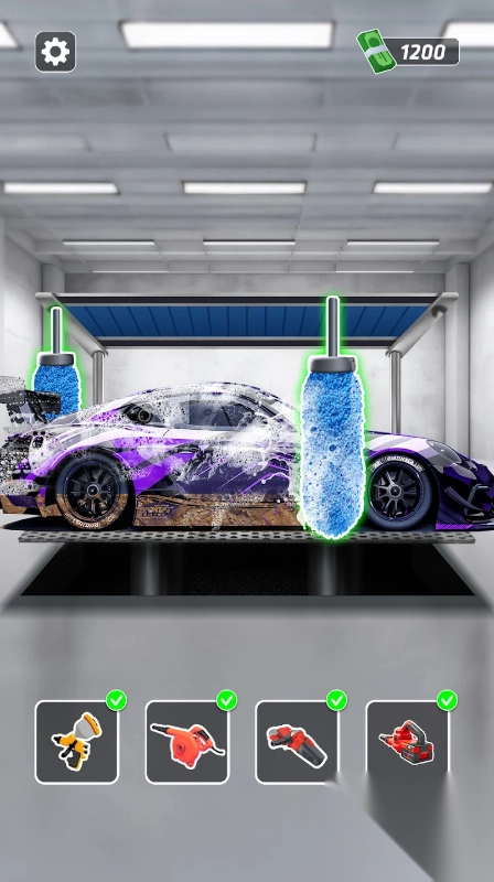 1.工具种类:游戏提供丰富的洗车工具,例如不同口径的高压水枪喷头、各种刷子(硬毛刷、软毛刷、轮毂刷)、海绵、擦车布、吸尘器、抛光机、蒸汽清洁器等。