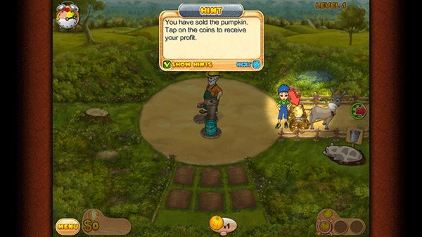 3、农场经营:生产农产品,开小商店满足不同顾客的需求,赚取金币扩大农场。