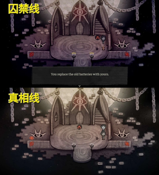 1. 电池:唯一不影响剧情走向的关键物品,在第3章解锁vision room(幻象房)时使用,必须保留。