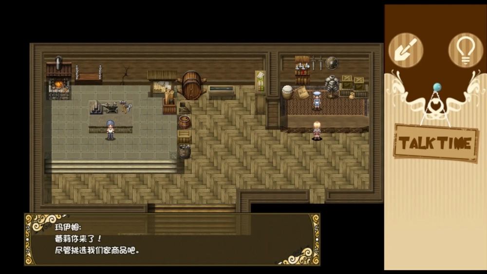 进入游戏,剧情结束后出门与人群对话,结束后回到自己家,让我们去拿衣服,服装店在左下角