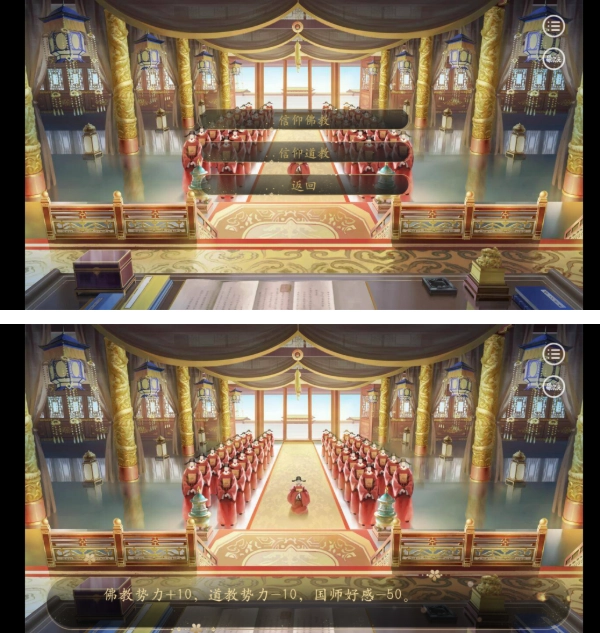 →两个选项,可以用来调整国师好感