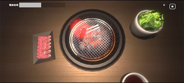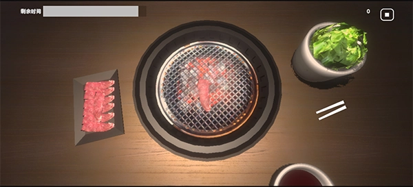 ② 烤肉模拟细节丰富,从翻肉、调味到摆盘都有交互操作,过程代入感强。