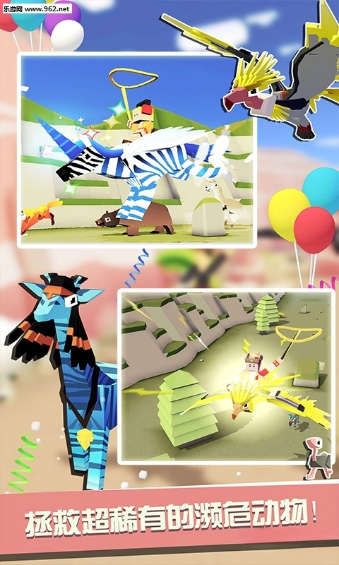 《疯狂动物园》是一款融合了3D像素、急速跑酷以及模拟养成元素的休闲小游戏。在这款游戏里,你将化身为一名极具冒险精神的绝世牛仔。在高速移动的状态下,与形形色色的动物展开较量。你得尽可能多地套住动物,然后把它们全都带回飞船上的“空中动物园”进行饲养;同时对园区进行升级,这样就能吸引世界各地的游客前来观赏,从而赚取更多金币。Now,让我们放手大干一场吧!