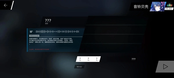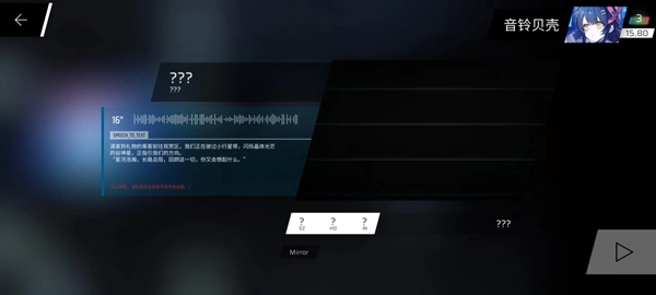 而进入第八章后,可以看到我们刚刚解锁的新曲,背景出现了乱码。原来刚刚解锁的是第二、第四和第五个曲子。可以看到最右侧还有一首歌,那个应该就是隐藏曲了,不过现在还无法解锁!但是我们看到了第三个的曲绘框开放解锁了,至少出现了新的方向。