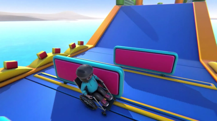 2、特技系统设计巧妙,轮椅可以完成多种空中翻转和贴地漂移动作,成功触发特技还能获得速度加成。