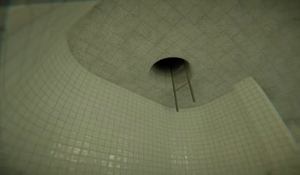 进入圆形区域黑暗楼梯的深处直至播放音效。