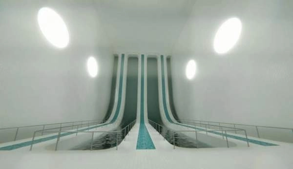 (5)位于圆形区域有橙色滑梯的大房间内部。