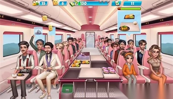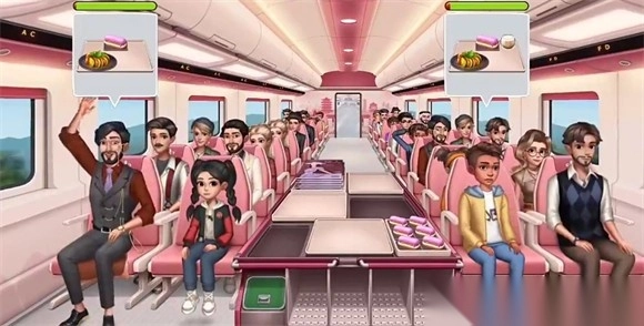 4、轻点右侧箭头,即可前往车厢为顾客供应美食,顾客所需美食会呈现于头顶的气泡之上。