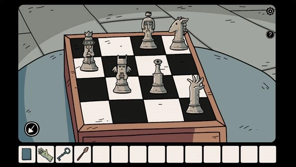输入符号打开书柜拿到「扳手」和「棋子」,再观察留言板上的卡片(注意每个棋子对应的位置),接着将棋盘棋子放置正确的位置(如上图)获得「电池」。