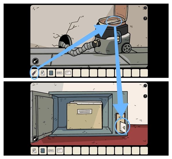 回到暗室将软管装在吸尘器上打开开关,再用美工刀割开袋子拿到「磁卡」,接着回二楼右侧房间用其打开保险柜,点击文件夹进入剧情。