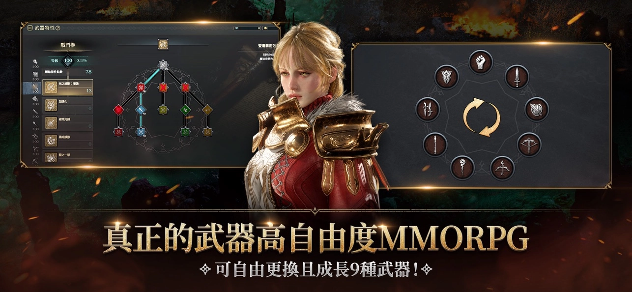 游戏中有常见的装备培育系统,不过比较特殊在于切换武器时装备虽然也可以跟着切换,不同职业可以装备同一套装备,这样前期就省去培育两套的问题,后期有资源时还可以依照所需的类型来养成装备。游戏中没有等级设计,而是采用武器熟练度等级,其可以提高武器的专精能力和解锁武器的特性加点点数,成长的标准也是取决武器等级,前期可以主推一种武器,之后再依喜好提升,较推荐远程更有利于BOSS挑战。